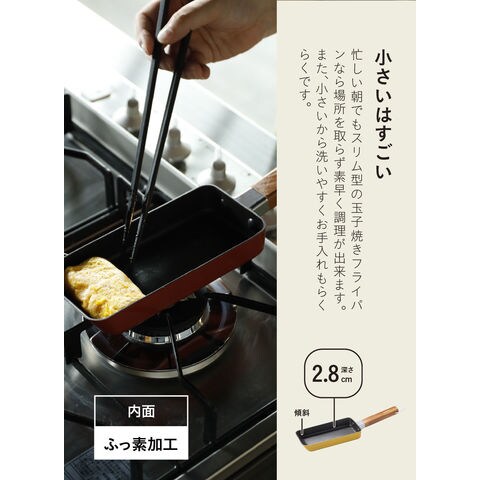 特徴:【スリムだから作りやすい】忙しい朝やお弁当作りにピッタリな玉子焼きフライパン.スリムなサイズ感なので、お手入れもサッと出来て便利.玉子の形を崩しにくく、ひっくり返しやすい傾斜付きなのも嬉しいポイントです.