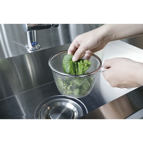 サイズ:商品セット状態/W25.5×D17×H15cm、鍋/W25.5×D17×H10cm、ザル/W25×D15×H11cm、蓋/φ14.5×H5.5cm、最大内径/16cm、底の厚さ/2.0mm(はり底を含む)