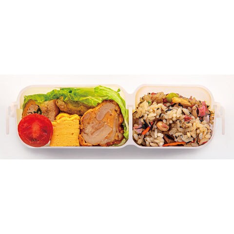 盛り付けをつぶさずフタを閉めることができる[盛り付けがしやすい弁当箱ドームマン]ごはんもおかずも、ふんわり食べやすい.車内や屋外での食事も、片手で持って食べられる便利なコンパクトサイズ.一体型のパッキンと4点ロックで汁漏れを防止します!本体の周囲と中仕切りをシーリングするWシーリング構造.お弁当内での汁移りも防ぐので、おかずなどの味移りも防止します(※本商品は密閉容器ではありませんので、水分の多い物や汁物は入れないでください.漏れの原因になります).[パッキン一体型のフタ]と[本体容器]の2パーツなのでお手入れも楽々.食器洗浄機、電子レンジ対応.