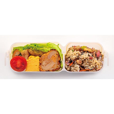 盛り付けをつぶさずフタを閉めることができる[盛り付けがしやすい弁当箱ドームマン]ごはんもおかずも、ふんわり食べやすい.車内や屋外での食事も、片手で持って食べられる便利なコンパクトサイズ.一体型のパッキンと4点ロックで汁漏れを防止します!本体の周囲と中仕切りをシーリングするWシーリング構造.お弁当内での汁移りも防ぐので、おかずなどの味移りも防止します(※本商品は密閉容器ではありませんので、水分の多い物や汁物は入れないでください.漏れの原因になります).[パッキン一体型のフタ]と[本体容器]の2パーツなのでお手入れも楽々.食器洗浄機、電子レンジ対応.