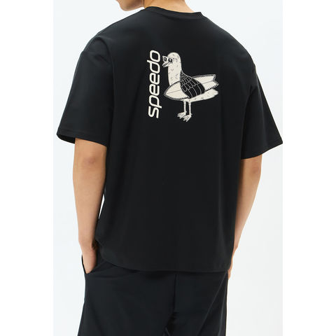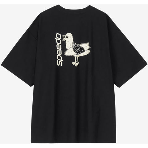 【コラボレーション企画】バックプリントが目を引くメンズラッシュティーです.優れたストレッチ性と耐塩素性に加え、柔らかく軽やかな風合いを実現した環境配慮型素材[ ENDURANCE LIGHT( エンデュランス・ライト ) ]を採用.ゆとりのあるシルエット.水陸両用. UV プロテクト (UPF50+ 、紫外線カット率 95% 以上 ) 機能付き. SPEEDO 発祥の地オーストラリア出身のアーティスト[ MULGA THE ARTIST( モルガ ) ]とのコラボレーション第 6 弾.今シーズンのテーマは[ ALOHA ].サーフボードを抱えたカモメのオリジナルプリントが愛らしい、バックコンシャスな一枚です.水辺での日焼け対策としての使用はもちろん、アスレジャーやタウンでも活躍します.