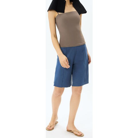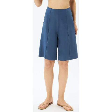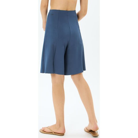 非日常でととのえるこころの健康をテーマに、大人のスイムウエアを提案する[ SPEEDO BREATH( スピード・ブレス)].インナー付きのレディースショーツです. GRS 認証のすてられるべき廃棄物を 100% 使用したナイロン糸[ RECO NYLON (レコ・ナイロン)]を使用したリサイクル素材[ SENSITIVE RECO ( センシティブ レコ ) ]を採用.縦にも横にも快適に伸びる 4WAY ストレッチ性. UV ケア( UPF15-30 、紫外線カット率 85 以上)機能付きです.ややハイウエストの A ラインシルエットのためすらっとした脚長効果が期待できます.やや長めのひざ上着丈で露出を気にせず着用いただけます.安心のボックスタイプのインナー付.トップスを選ばない上品でシンプルなデ