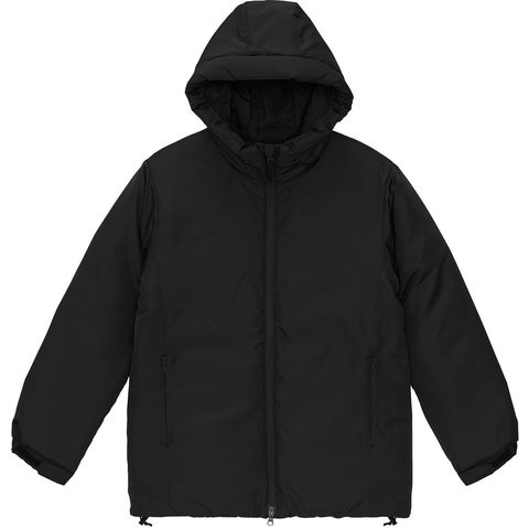 フードまでボリューム感たっぷりタフタ生地の中綿アウター.フードタイプの中綿パーカは、シンプルなデザインでどんなシーンにもマッチする万能アイテム.高密度タフタ生地を使用しており、軽量さと上品な光沢感が魅力です.表地はハリ感を出すためアクリルコーティングを施しながら、裏地はあえてコーティングを施さずに肌当たりを良くしました.チンガード付きのフロントジップは、上まで閉めればハイネック仕様であたたかさをキープ.袖口と裾口を絞ることができるため、丸みのあるシルエットに調節できるほか、秋冬の冷たい風の侵入を軽減します.内側の裾部分には、袖まで加工が可能なコンシールファスナーを配し、加工のしやすさも担保しています.