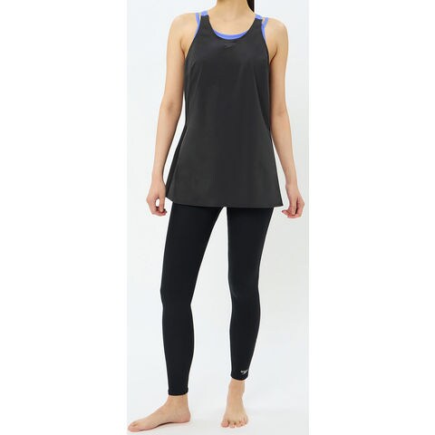 プールでのアクティビティをフレッシュに、より楽しくサポートするフィットネススイムウエアカテゴリー[POOLATHLETICS(プール・アスレティクス)].ボディラインをふんわりカバーするエアリーなセパレート[AIRPA(エアパ)]シリーズよりレギンスタイプが登場.優れたストレッチ性に加え、軽い着心地とさらりとした肌触りの環境配慮型布帛素材[SOFT&STRETCH TAFFETA(ソフト&ストレッチ・タフタ)]を採用.トップスは2枚構造でウエストラインなど隠したいところをふんわりカバーします.インナーはウエストにしっかりインできるため、めくれ上がりにくくします.