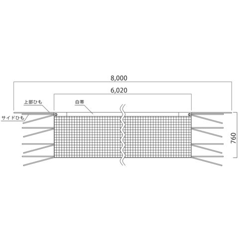素材:ネット / ナイロン、上部コード / ポリエステル、白帯 / ターポリン