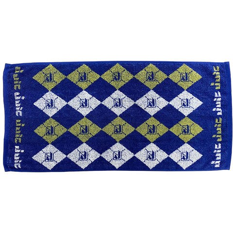 シンプルで洗練されたダイヤ柄デザインが魅力のスポーツタオル.綿 100 素材で汗をしっかり拭き取り快適なプレーをサポートします.