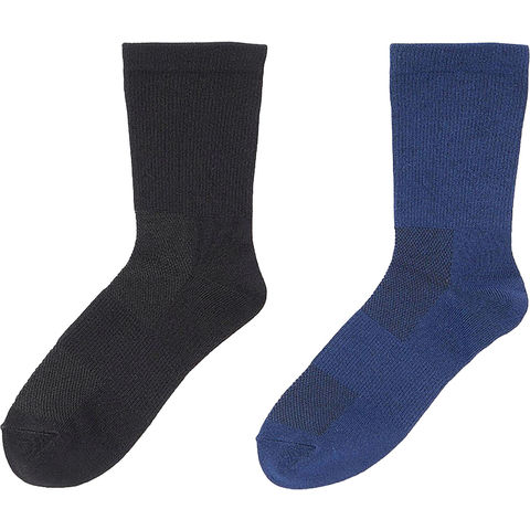 デイリーにもビジネスにも!ムレにくくサラっと快適な定番ソックス.同サイズ 2 色 1 組のセミロング丈ソックス.ブラック & ネイビーの定番カラーで普段使いしやすく、ビジネスにも最適◎.メッシュ編みにすることで、通気性がよくムレにくくサラっと快適.抗菌防臭効果のある糸を採用することで気になるニオイを防止.