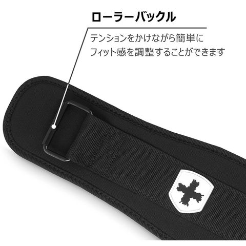 腰をしっかりサポートする軽量なトレーニングベルト.IWFの競技基準を満たした4.5インチ幅のトレーニングベルトです.薄型で軽量なデザインで、トレーニング中の動きを妨げることなく、腰をサポート.ベルトの端がはみ出ることがなく、しっかりと固定できるプレミアム面ファスナー採用.スチール製のローラーバックルは、お好みのフィット感に調整が可能.バックルの前は『X』型に縫い付けられ、耐久性アップ.