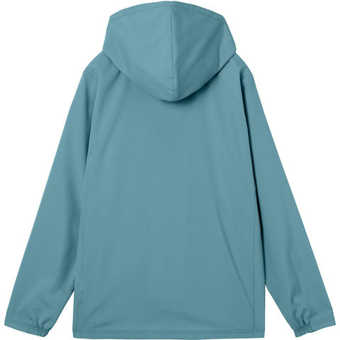 LCS ESSENTIAL~軽やかにスポーツを楽しもう~.デザインは、ブランドを象徴するトライアングルの切替をフード左側に施し、シンプルかつスポーティーな仕上げに.右肩部分にはトリコロールのピスネームを配置.適度なハリコシに加え、ストレッチ性に優れた軽量布帛素材で春や秋のトレーニングは当然、夏はUVカットアイテムとしても着用可能.吸汗速乾性も備え、ランニングやウォーキング、屋内トレーニングなど幅広いシーンで活躍する1着.シルエット/後ろ身の方がやや長い設計で安心感のあるシルエット.フード付き.ジョガーパンツ[LT5FPZ20L]とのセットアップ品番.