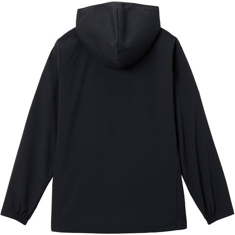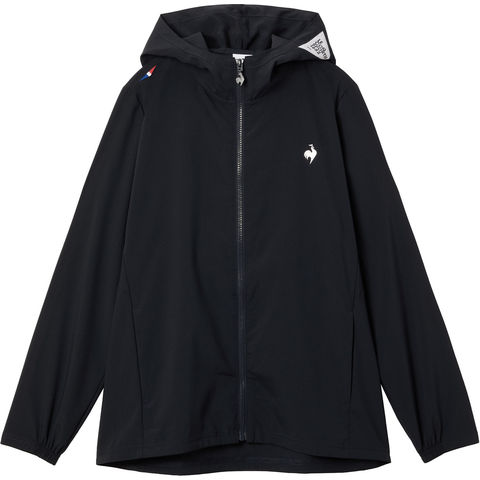 LCS ESSENTIAL~軽やかにスポーツを楽しもう~.デザインは、ブランドを象徴するトライアングルの切替をフード左側に施し、シンプルかつスポーティーな仕上げに.右肩部分にはトリコロールのピスネームを配置.適度なハリコシに加え、ストレッチ性に優れた軽量布帛素材で春や秋のトレーニングは当然、夏はUVカットアイテムとしても着用可能.吸汗速乾性も備え、ランニングやウォーキング、屋内トレーニングなど幅広いシーンで活躍する1着.シルエット/後ろ身の方がやや長い設計で安心感のあるシルエット.フード付き.ジョガーパンツ[LT5FPZ20L]とのセットアップ品番.