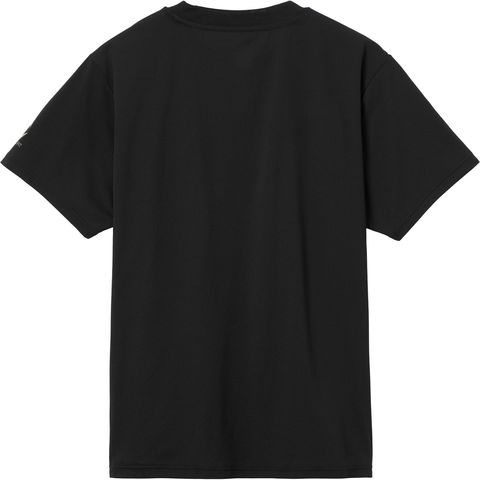 前身に大きくブランドロゴプリントを施した半袖 T シャツ.軽量のピンメッシュ素材を採用.全体に配置された細かなピンメッシュ部分から衣服内に空気を適度に取り込むことで、快適な衣服内環境を保つ.