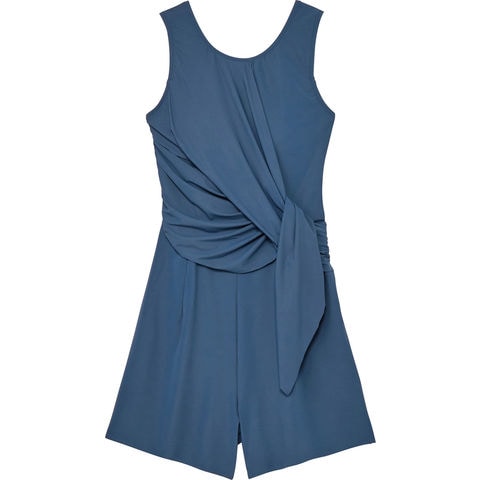 非日常でととのえるこころの健康をテーマに、大人のスイムウエアを提案する[ SPEEDO BREATH( スピード・ブレス)].アシンメトリーなデザインのレディースオールインワンです. GRS 認証のすてられるべき廃棄物を 100% 使用したナイロン糸[ RECO NYLON (レコ・ナイロン)]を使用した環境配慮型素材[ SENSITIVE RECO( センシティブ レコ ) ]を採用.縦にも横にも快適に伸びる 4WAY ストレッチ性. UV ケア( UPF15-30 、紫外線カット率 85 以上)機能付きです.左右で表情の異なるアシンメトリーデザイン.右側はウエスト部分にスリットを入れ、抜け感を演出.左側はカシュクールドレープのデザインポイントをつけました.差し込みタイプのカップ付き.バックス・