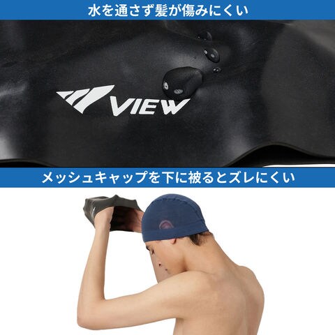 ビュー VIEW シリコーンワンポイントキャップ メンズ レディース スイミング プール フィットネス 水着 授業 学校 水泳帽 トレーニング 部活 クラブ アクアビクス ロゴ V61 ブルー