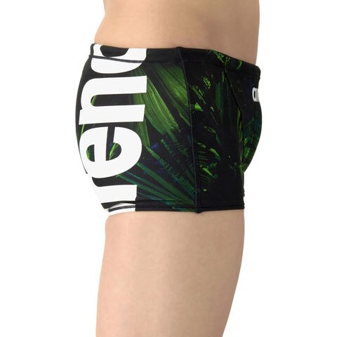 トレーニングカテゴリー[TOUGHSUITシリーズ].大会に向けて練習を重ねる頻度が高いスイマーにオススメの練習用水着.環境に配慮したリサイクルポリエステル素材でフィット感強めの[タフスキンT2E]を使用し塩素に強く長持ち.シーズンテーマのSUNLIGHTのデザインのショートレッグタイプ水着.空のブルーと色鮮やかで活き活きとしたリーフをモチーフとしたグラフィックを採用.アリーナロゴを大きく入れたスポーティなデザイン.前身頃、後身頃に黒の裏地付き.※こちらの商品は返品、交換はお受けしかねますのでご了承ください.