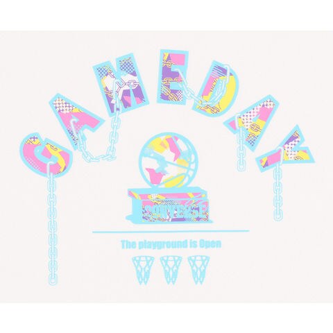 バスケットボールやシューズボックスをパステルカラーの幾何学模様で表現した T シャツデザイン.柔らかな肌触りに吸汗速乾を兼ね揃えたスポーツ向けアイテムです.