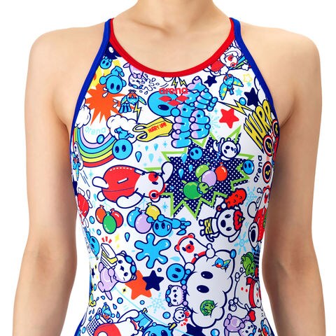 トレーニングカテゴリー[TOUGHSUITシリーズ].大会に向けて練習を重ねる頻度が高いスイマーにオススメの練習用水着.環境に配慮したリサイクルポリエステル素材[タフスキンEP]を使用し塩素に強く長持ち.全てのスイマーに人気のアリーナくんシリーズ.シーズンテーマである[天気]と連動するデザイン.アリーナくんと仲間たちの楽しい日常を、天気をテーマに描いたストーリー仕立て.明るいカラーリングと、POPでダイナミックな柄がポイント.前身頃、後身頃共にBKRDとWHRDはブラック、RDBLはピンク、GRORはミントの裏地付き.ワンピースタイプ.※こちらの商品は返品、交換はお受けしかねますのでご了承ください.