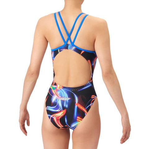 トレーニングカテゴリー[TOUGHSUITシリーズ].大会に向けて練習を重ねる頻度が高いスイマーにオススメの練習用水着.環境に配慮したリサイクルポリエステル素材でフィット感強めの[タフスキンT2E]を使用し塩素に強く長持ち.光が動きに沿って流れるようなデザインでスピード感のあるグラフィック.前身頃、後身頃に黒の裏地付き.ワンピースタイプ.※この商品は縫製上、一点一点プリント柄の見え方に違いが生じますので予めご了承ください.※こちらの商品は返品、交換はお受けしかねますのでご了承ください.
