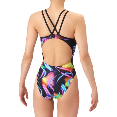 トレーニングカテゴリー[TOUGHSUITシリーズ].大会に向けて練習を重ねる頻度が高いスイマーにオススメの練習用水着.環境に配慮したリサイクルポリエステル素材でフィット感強めの[タフスキンT2E]を使用し塩素に強く長持ち.光が動きに沿って流れるようなデザインでスピード感のあるグラフィック.前身頃、後身頃に黒の裏地付き.ワンピースタイプ.※この商品は縫製上、一点一点プリント柄の見え方に違いが生じますので予めご了承ください.※こちらの商品は返品、交換はお受けしかねますのでご了承ください.
