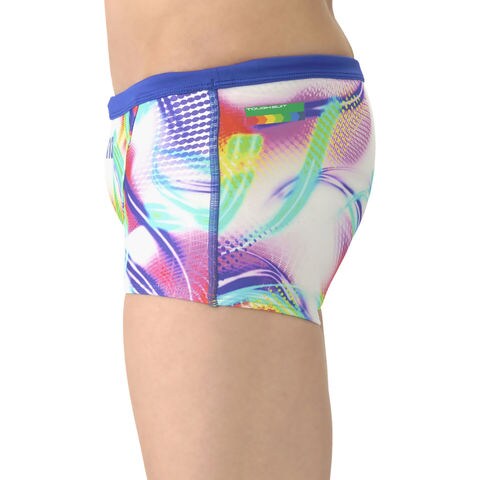 トレーニングカテゴリー[TOUGHSUITシリーズ].大会に向けて練習を重ねる頻度が高いスイマーにオススメの練習用水着.環境に配慮したリサイクルポリエステル素材でフィット感強めの[タフスキンT2E]を使用し塩素に強く長持ち.光が動きに沿って流れるようなデザインでスピード感のあるグラフィック.前身頃、後身頃に黒の裏地付き.ショートレッグタイプ.※この商品は縫製上、一点一点プリント柄の見え方に違いが生じますので予めご了承ください.※こちらの商品は返品、交換はお受けしかねますのでご了承ください.