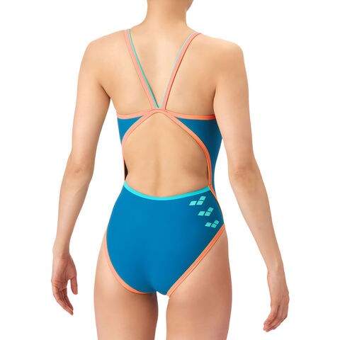 アリーナ arena トレーニングワンピース オープンバック 水着 レディース ウィメンズ 女性 大人 水泳 競泳 スイム ウェア プール フィットネス トレーニング 練習 ハード AS6SWM38L ブルー/オレンジ