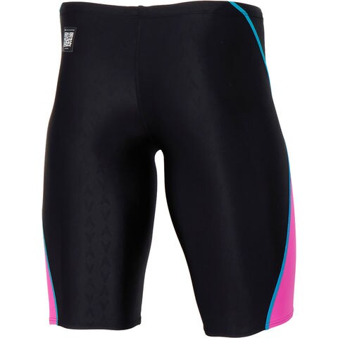 WORLD AQUATICS承認モデル.マスターズスイマーのための、透けにくく泳ぎやすい、安心感のあるメンズジャマーです.リサイクルポリエステル糸を使用した環境配慮型素材[FLEX Σν(フレックス・シグマ・ニュー)]を採用.透けにくい安心感のある手持ち感と進化した伸縮性がスイマーのアクティブな泳ぎをサポート.表面のブーンエンボス加工が、ボディラインをカバーし、はっ水性が軽量感をキープします.股関節に沿った切り替え設計が脚の動きをスムーズにし、ステッチによる肌擦れを軽減.膝上までのレッグ丈(4分丈)です.速さや強さをイメージさせるデザインと鮮やかなカラーリングが特徴的です.