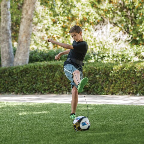 一人でもクオリティの高い練習ができるソロサッカートレーナー.ボールを追いかけることなしに、サッカー練習を限界まで拡大.場所を問わない練習でスキルを構築、確実性を高め、シュート、パス、レシーブ、ジャグリング、ボールコントロール、スローインを向上させます.ネオプレーン製のボールグローブ(ボールカバー)は調節可能で、ボールサイズ3、4、5に適応.高品質のコードも調節可能で、18フィート(約5.5m)まで伸長可能.