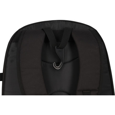 S字フック搭載で引っかける事が出来る.前面部にポケット.カラビナやネーム札を引っ掛けるベルト.左側サイドポケット部分にバット収納可能.リフレクトテープ.チェストベルト.