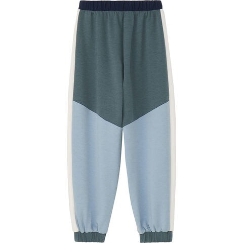 子どもたちの活発な動きに対応する、ストレッチ性、速乾性のあるポリエステル素材を採用したワイドパンツ.