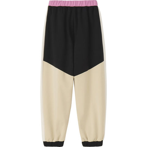 子どもたちの活発な動きに対応する、ストレッチ性、速乾性のあるポリエステル素材を採用したワイドパンツ.