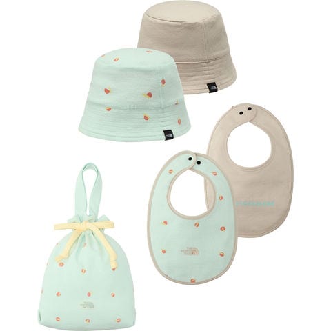ザ・ノース・フェイス THE NORTH FACE ハット&ビブセット ベビー 赤ちゃん 帽子 よだれかけ スタイ オーガニックコットン 綿100 リバーシブル 収納袋付き 巾着 おでかけ 散歩 公園 NNB02610 ウォブリン