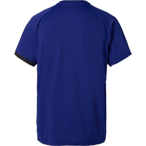 袖先の配色がデザインポイントのバレーボール用ゲームシャツです.バレーボールに特化した設計を採用しています.具体的には 1. 肩甲骨部分のストレスを軽減するため、脇下から肩甲骨部分にゆとりを持たせつつ、背面を 1 枚構造にしています. 2. ネットタッチ防止のため、裾を従来よりスリムな設計にしています. 3. 腕の振り上げ時に裾が上がってきてしまう点を軽減するため、裾を長めに設定しています. 4. フライングレシーブの際、骨盤部分の当たりを軽減するため、切替を後ろに振った設計にしています.