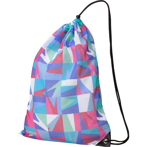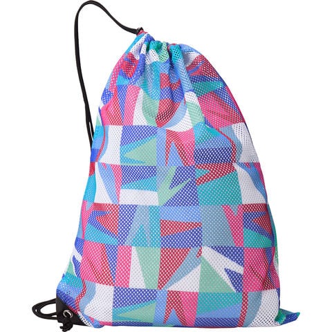 プールやフィットネスシーンで重宝するメッシュバッグです.メッシュ素材なので濡れたままのトレーニンググッズを入れて持ち運びでき、そのまま干すことも可能.紐の留め具付き.安心感のあるしっかりとした生地感です. SPEEDO らしいカラフルなブーン柄に気分も上がりそう !
