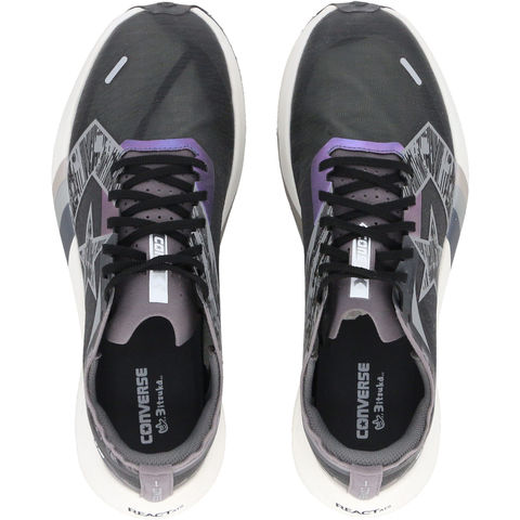コンバースのランニングレーベル[ CONVERSE RUNNING ]のランニングを楽しむパフォーマンスモデル.ランニングエバンジェリスト[三津家 貴也]さんの意見を随所に取り入れたオリジナルデザインのコラボモデル.三津家さんが推奨する、ミッドフット走法に適したラストと軽量で反発性の高いソール設計を採用.三津家さんの意見を取り入れたオリジナルデザイン.超軽量メッシュを使用し軽さと通気性を兼ね備えたアッパー.[ REACT ATS ]と[ガイディングカーボンプレート]がクッション性と走行時のブレを抑え正しいフォームをサポート.通気性とクッション性に優れたオープンセル構造のウレタンカップインソールを採用. REACT ATS (REACT AUTOMATIC STABLE) …硬度の・