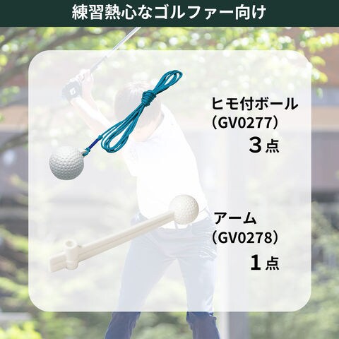 仕様:【お得なスペア用品おまとめセット】スペアアーム (GV0278)1 点 + 紐付きスペアボール (GV0277)3 点の計 4 点入り.練習熱心なゴルファー様のご要望にお応えして、スペア用品のおまとめセットをご用意しました!