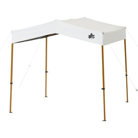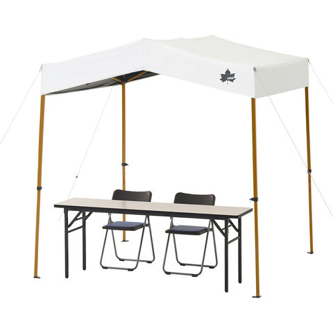 簡単設営約 3 分&高さ調節 3 段階!雨天時の出入りで濡れにくい切妻モデル.雨水を左右方向へ導き、前後方向への雨だれを軽減するので出入り時に濡れにくい.会議机 (180CM) がピッタリ収まるサイズなので、イベント時の受付利用にもおすすめ.シートには、ソーラーブロック加工を施し、 UV カット率 99.9 以上、遮光率 100 ! ( ※ 1 ) 日向と日陰で- 15 ℃の温度差を実現