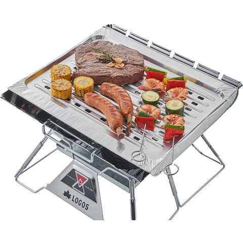 簡単セットで美味しく焼けて、お掃除楽ちん!使い切り炭焼きプレート.焼網に置けばおいしく焼けてお掃除も楽ちんなプレート.清潔に調理できるうえ、無数の穴が炎や煙を通すため、できあがりのおいしさは炭焼きとほぼ同じ.食材のこびりつき汚れはまとめて処分するだけ.お手持ちのグリルのサイズに合わせて、プレートを切ったり折り曲げることができるため、幅広いサイズのグリルや、別売りのピラミッド TAKIBI に対応する. 2 枚入り.