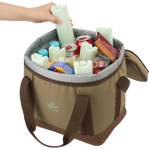 小さなクーラーボックスやトート型のクーラーバッグには横置きで敷いて保冷効果を持続できます.