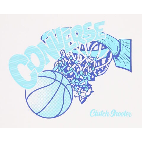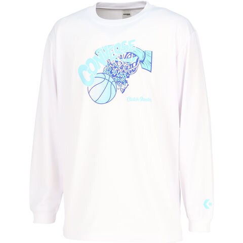 コンバースのロン T .シュートの軌跡を表現したオーセンティックなグラフィック.柔らかな肌触りに吸汗速乾を兼ね揃えたスポーツ向けアイテム.