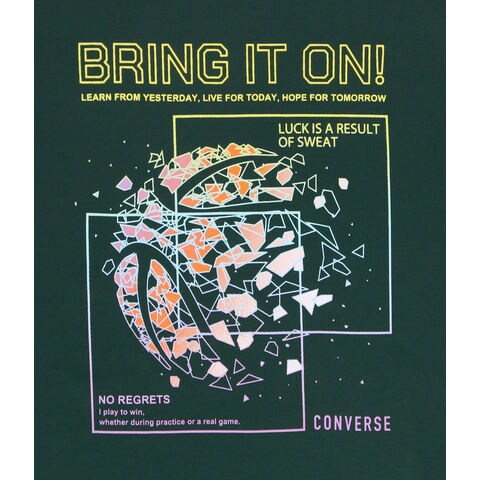 コンバースのジュニアロン T .鮮やかなグラデーションを使用したワイヤーフレームのバスケットボールデザイン.柔らかな肌触りに吸汗速乾を兼ね揃えたスポーツ向けアイテム.