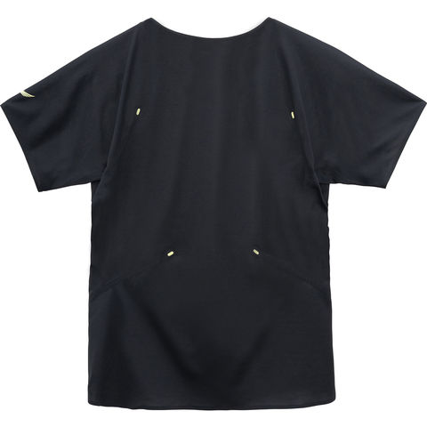 軽量性・シームレス仕様・“ AILE FORME “パターンを特徴としており、ギアとしてのアパレルを目指したアイテム.特殊な技術でシームレス仕様にすることにより肌面のストレスを軽減.テニスをされる方の優雅な動きに寄り添うことができるしなやかでコンフォートなテニスウェア.テニスの基本動作である、サーブ・ストローク・ボレーの動きに着目し、 DISC で検証し開発したウェア.動作時のストレスをダーツとパターンで解消した“ AILE FORME “パターンを搭載したゲームシャツ.