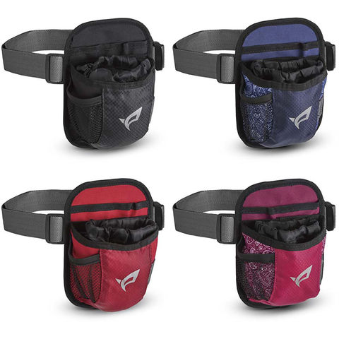 ボールや小銭入れなど、ちょっとした小物を収納しやすいメインポケット.スコアカードケースやスマホが収納しやすい.サイドには別売りのボールホルダーが取り付けられるパーツ付き.