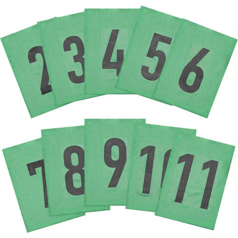NEW BALANCE FOOTBALL の定番商品.トレーニングに不可欠のビブス. NO.2-NO.11 の番号付き. 10 枚1セット.専用メッシュ袋付き