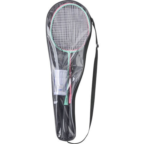 入門&レジャー用ラケット.バドミントンラケット 2 本、シャトルコック 2 個が専用ケースに入ったセットです.※当製品は競技用、教材用には使用しないでください.