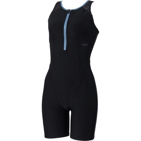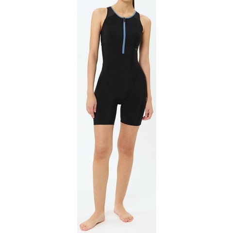 プールでのアクティビティをフレッシュに、より楽しくサポートするフィットネススイムウエアカテゴリー[ POOL ATHLETICS( プール・アスレティクス ) ].スタイリッシュに泳ぎこみたい方におすすめのレディースニースキンです.縦横に自由に伸びて着脱もスムーズ.着用後も心地よくフィットしてズレにくい、環境配慮型素材[ ULTRA STRETCH 0( ウルトラ・ストレッチ・ゼロ ) ]を採用.ボディラインが出にくい安心感のある厚みです.はっ水機能付き ( 非フッ素はっ水 ) .着脱に便利なハーフジップ仕様.高めのネックラインが水の侵入を軽減します.肩 ~ 背中にかけて通気性のよいメッシュ生地を採用.露出を抑えつつ、デザインにもこだわった背穴.着脱時のもたつきが少