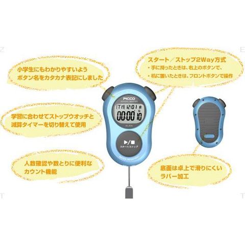 学習時、机の上で使いやすいストップウォッチ.学習目的に合わせてストップウォッチと減算タイマーを切り替えて使えます.カウント機能/人数確認や個数チェックが可能です.底面には卓上で滑りにくいラバー加工が施されています.