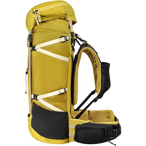 寝袋を収納できるSpeed Zipコンパートメントには取り外し可能な仕切り付き.ポケット付きウエストベルト.ボトム部はディファレンシャルカット(構造に応じて内側と外側の生地を異なる形状に裁断すること)の生地を2重に使用し、耐久性を向上.ハイドレーションシステム対応.
