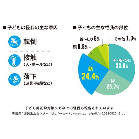 機能:フレキシブルラバーテンプル(耳掛け部分自由調整機能)、エラストマサイドガード(花粉/風の巻き込み/埃や虫から目を保護します)