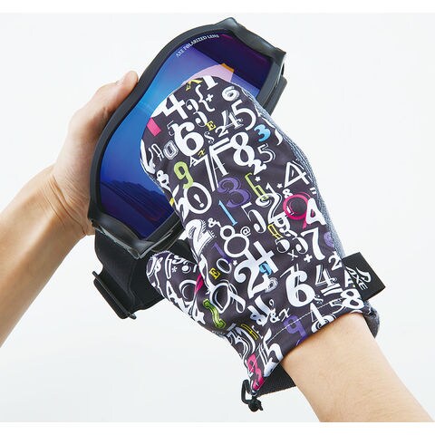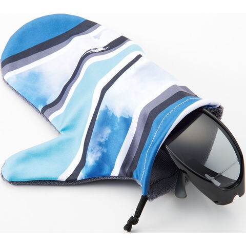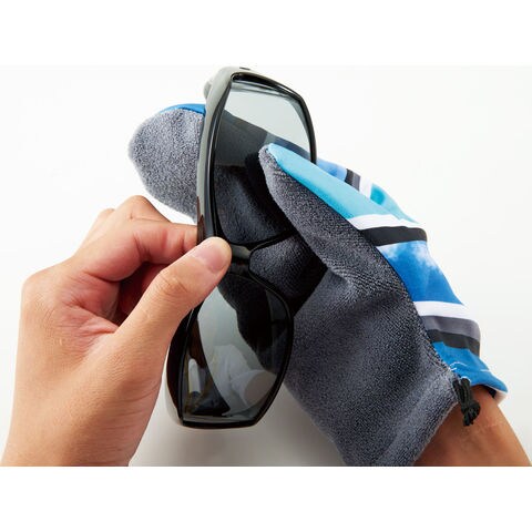 手にはめて使用できるミトン型のクロス.マイクロファイバーだから素材にキズをつけません.サングラスの収納ポーチとしても使用可能です.