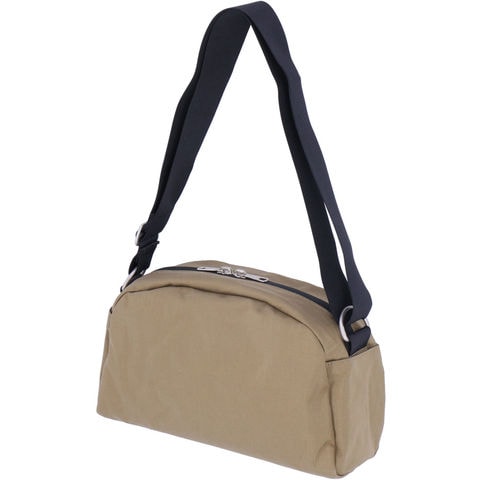 トップが丸いショルダーポーチ.メインの収納はSサイズながらマチがあるので、500mlのペットボトルや長財布が入ります.また、キーチェーンや、小物にちょうどいい二つ分けのスリーブ、中身が見えるメッシュのファスナーポケットも付いています.表面には、スライダーポケットが付いていますので、サッと取り出したい物を入れておくのに便利です.両サイドには小さいスリーブが付いており、一時的に入れておきたい物などをスッと入れておくことができます.