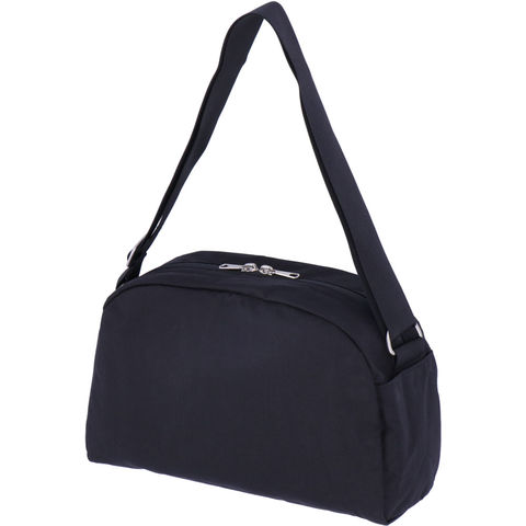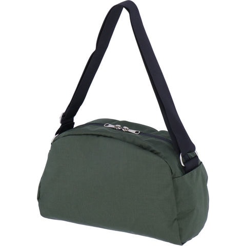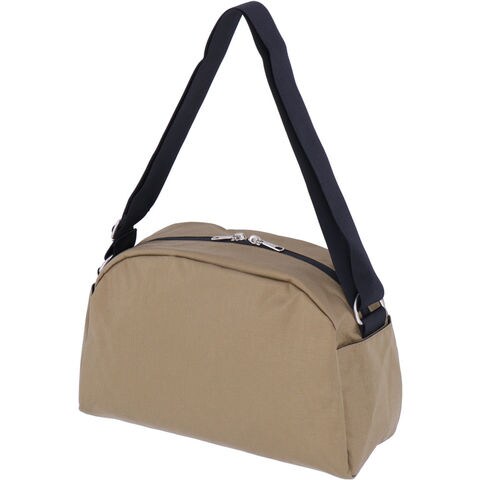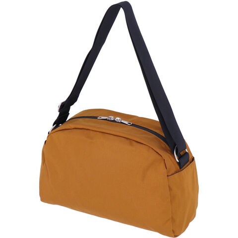 トップが丸いショルダーポーチ.メインの収納はマチがあるので、500mlのペットボトルや長財布が悠々と入ります.また、キーチェーンや、小物にちょうどいい二つ分けのスリーブ、中身が見えるメッシュのファスナーポケットも付いています.表面には、スライダーポケットが付いていますので、サッと取り出したい物を入れておくのに便利です.両サイドには小さいスリーブが付いており、一時的に入れておきたい物などをスッと入れておくことができます.生地はインビスタ社製の500D(デニール)コーデュラナイロンを使用.ナイロンは引き裂き強度・耐摩耗性に優れている生地で、ポリエステルに比べ柔らかい触り心地が特徴です.